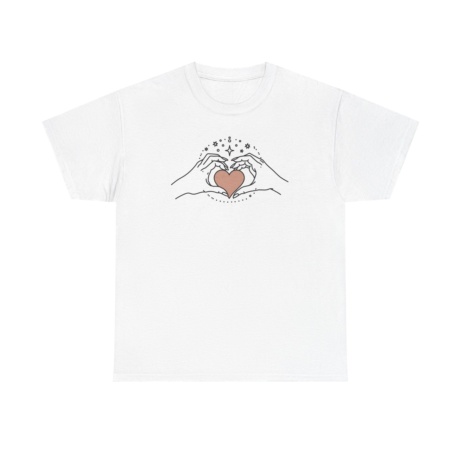 Introducing our Unisex Heavy Cotton Tee, the perfect blend of comfort and style for every occasion. This tee radiates a relaxed yet stylish vibe, making it a staple in anyone's wardrobe. Its classic fit and crew neckline ensure it pairs seamlessly with any outfit, whether you're heading to a casual hangout or a semi-formal gathering. Ideal for adults, this shirt is wonderful for gifting on holidays such as birthdays, Valentine's Day, or just to show appreciation to a loved one. Its unique design, featuring hands forming a heart, brings a warm and loving atmosphere to your attire, making it perfect for celebrations of love and friendship. Whether you're attending a family gathering, a casual outing, or simply lounging at home, this tee adds a touch of charm and positivity to your wardrobe.