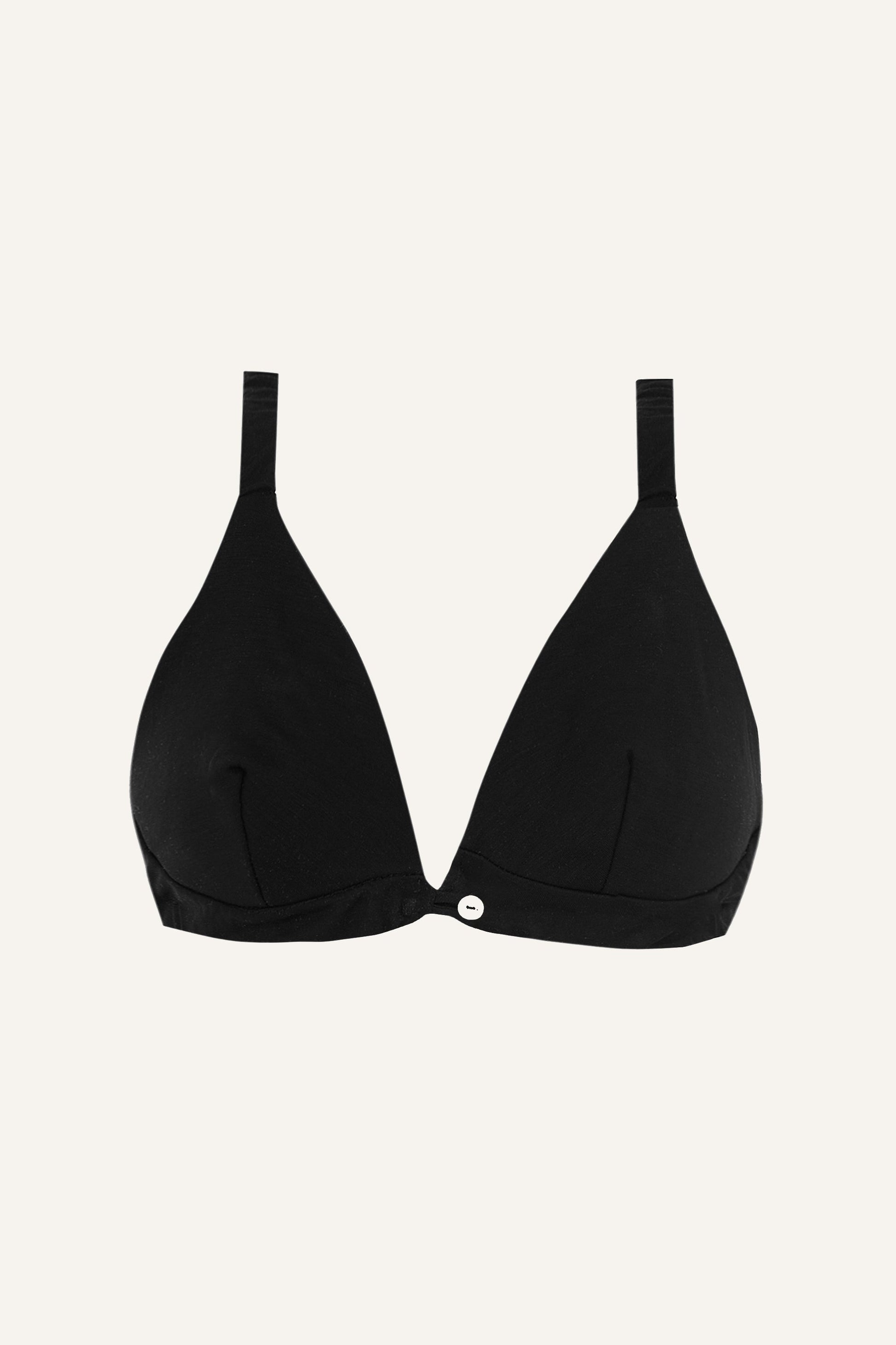 This sculpted bra brings together the best of nature — crafted from two layers of PYRATEX® SeaCell, with a core of 100% merino wool for breathable, plastic-free support. Same iconic cut. Same pearl-mass front closure. But this time, powered by SEACELL: a fiber made from Icelandic seaweed and wood pulp, rich in natural antioxidants and kind to even the most sensitive skin.